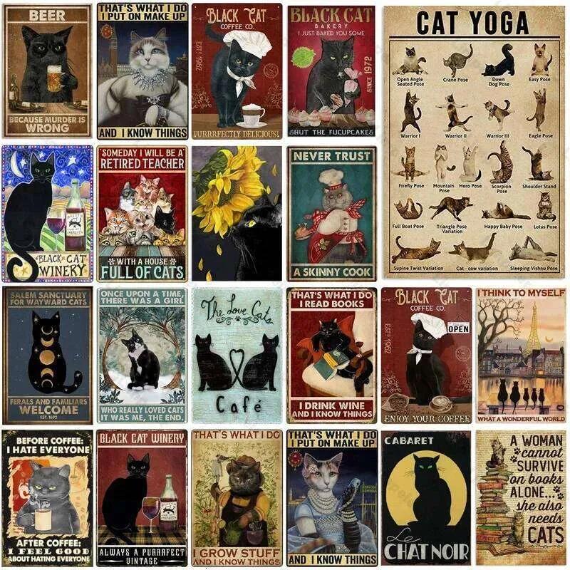 Black Cat Cartoon Anime Poster Metal Sign Garage Man Cave Wall Signs Cute Cats Tin Board Painting Decor Plates Plaques 26T0104 26T0104