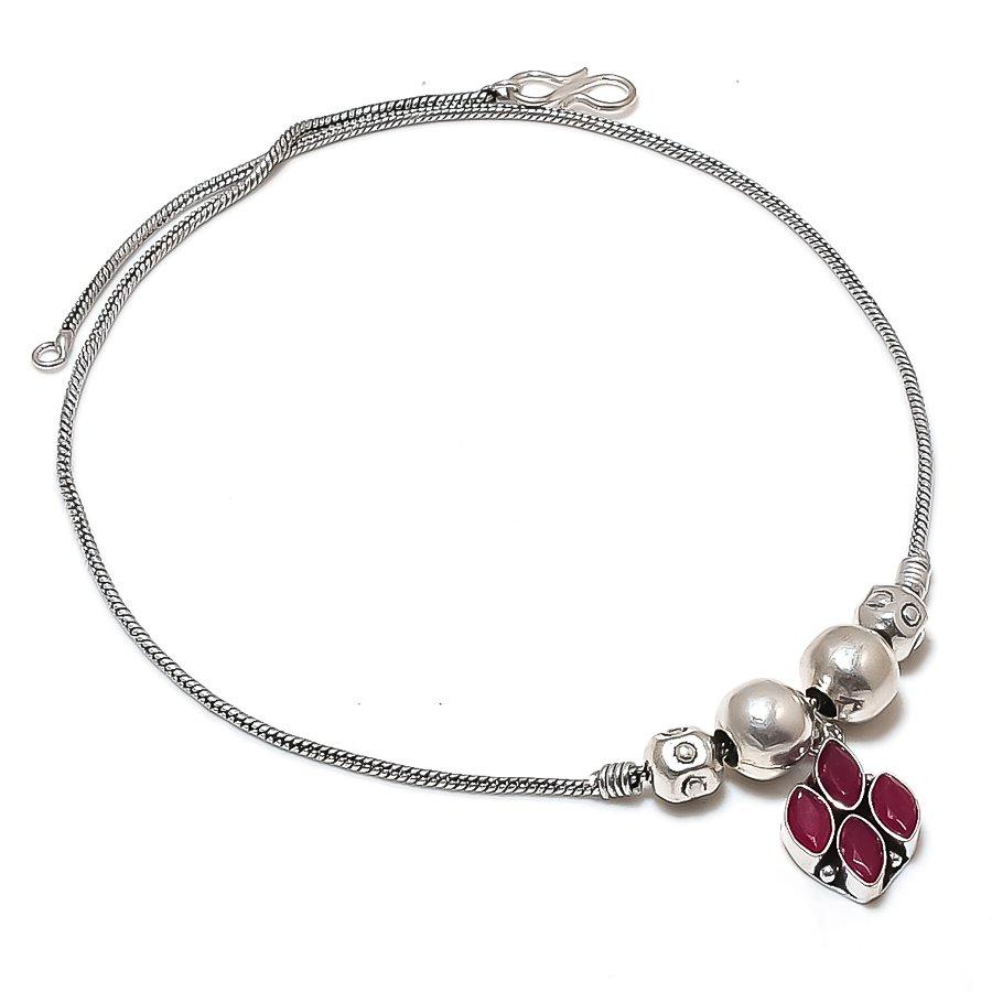 Kashmir Red Ruby(Simulated) Gemstone 925 Sterling Silver Jewelry Necklace 18" ASN-5960