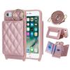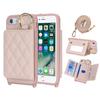 For iPhone SE (2022)/(2020)/8/7 Case with Lanyard/Mirror/Card Holder Grids Pattern RFID Blocking Phone Cover