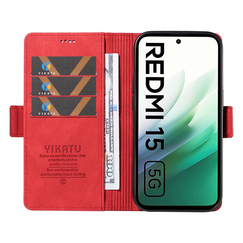 For Xiaomi Redmi 15 4G (EU) (171mm) Leather Case YIKATU YK-005 Skin-touch Feeling Wallet Phone Cover