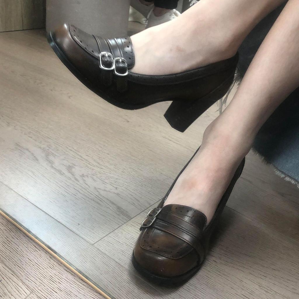 Thick Heel Loafers European 100-buckle Year-old High Heel Mary Jane Small Leather Shoes with Skirt