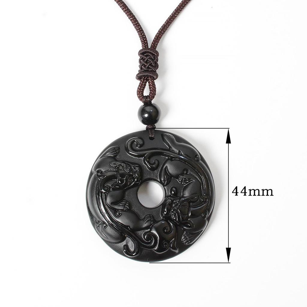 Obsidian Dragon Double Pixiu Peace Pendant Necklace for Men and Women