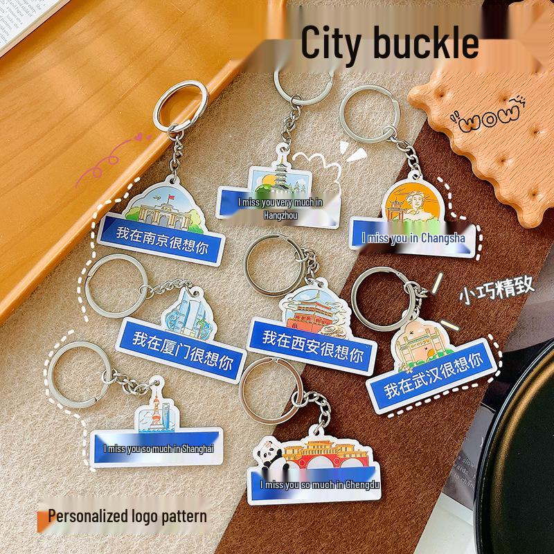 Acrylic Road Sign Keychain with "Where I Am, I Miss You" Message
