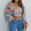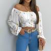 Sexy Off Shoulder Womens Tops and Blouses Puff Sleeve Tops Summer Flower Vintage White Women Shirt