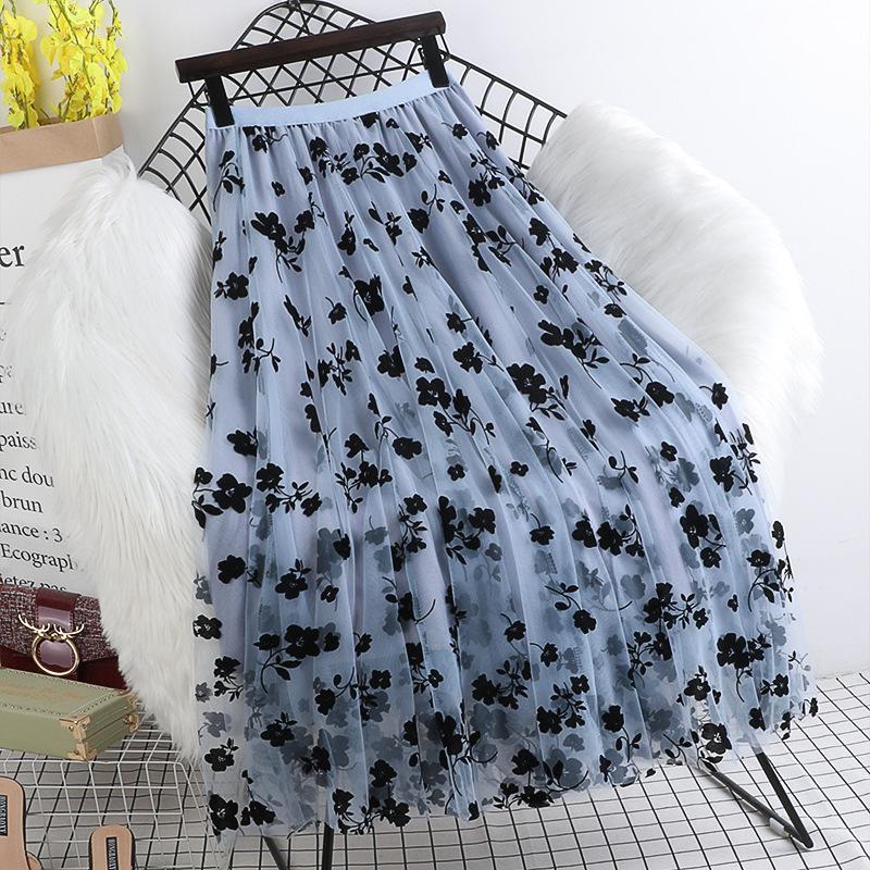 Spring Summer High Waist All-match Embroidery Mesh Skirt Temperament Mid-length Long Skirts for Women Slim