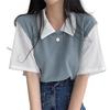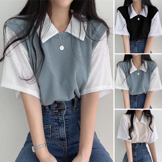Casual and simple summer t-shirt features lapel and fake two pieces design. The loose design of this t-shirt makes you feel comfortable and at ease.