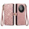 For Honor X70 Pro 5G Case Zipper Wallet Geometry Lines Leather Phone Cover with Strap