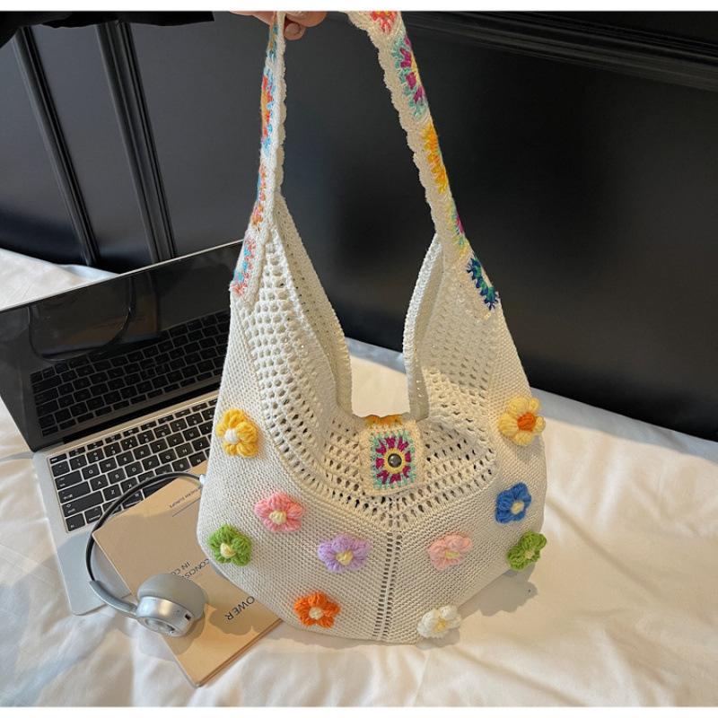Trend Hand-woven Handbag, Pearl Hollow Shoulder Bag, Women's Casual Large-capacity Women's Bag, Foreign Style Messenger Bag