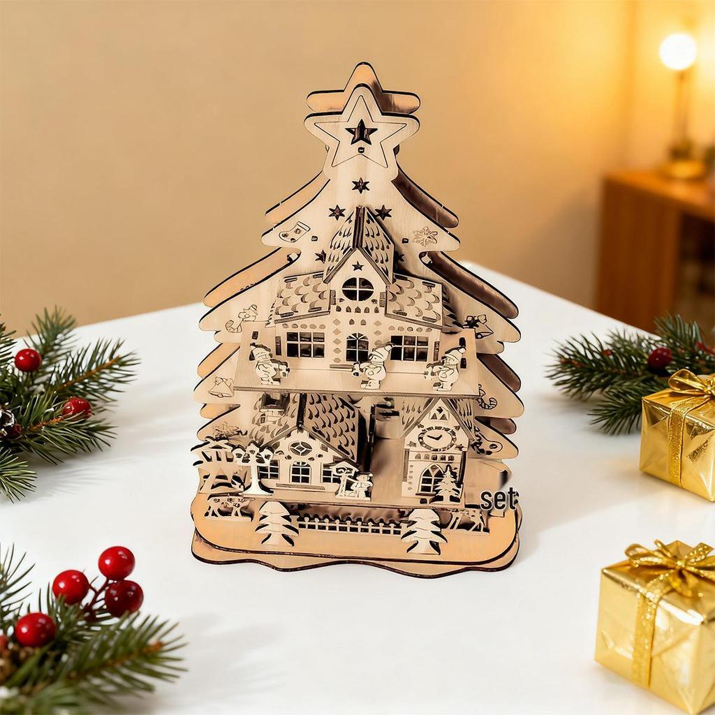 3D Christmas Cabin Wooden Puzzle: Educational DIY Holiday Ornament