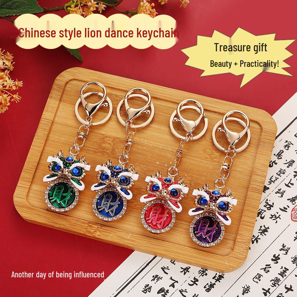 Chinese Fortune Lion Head Keychain with Rhinestones - Lion Dance Foshan Cultural Gift