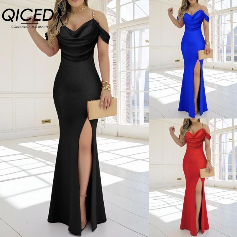 QICED Women's Fashion Summer Spring Solid Color Print Sleeveless V-Neck Casual Dresses