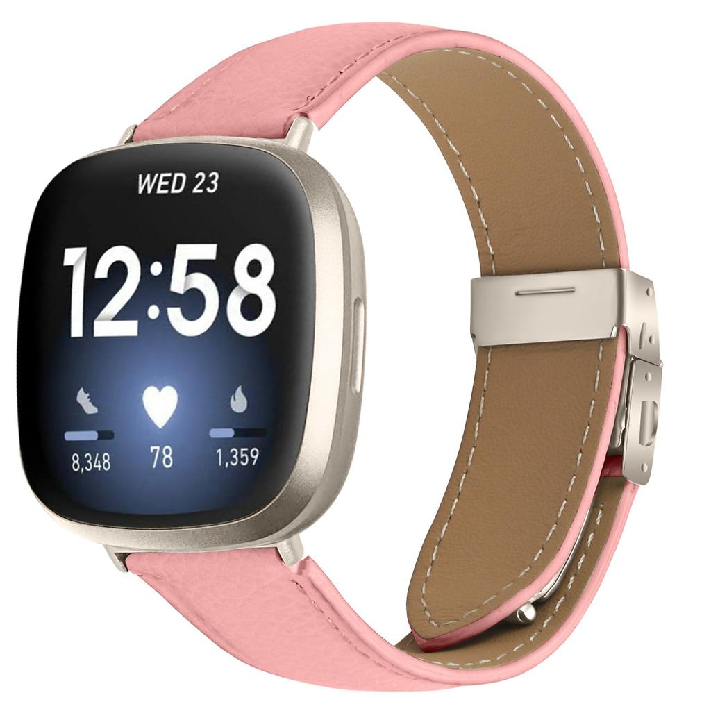 For Fitbit Versa 4/Sense 2 Genuine Leather Watch Band with Starlight Connector Turtle Back Buckle