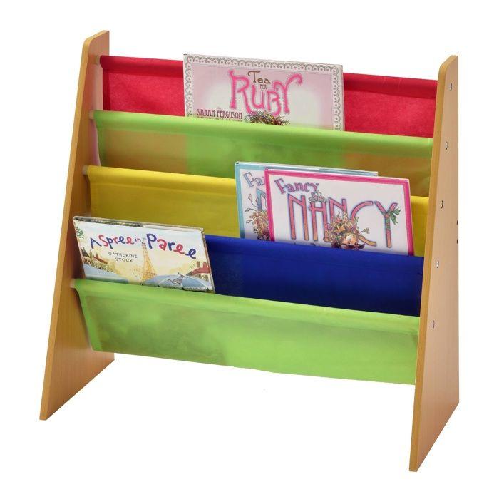 GINGER HOME – Étagère Bibliothèque Enfant 4 Compartiments, Meuble de Rangement Livres et Jouets, Structure Bois et Tissu Multicolore