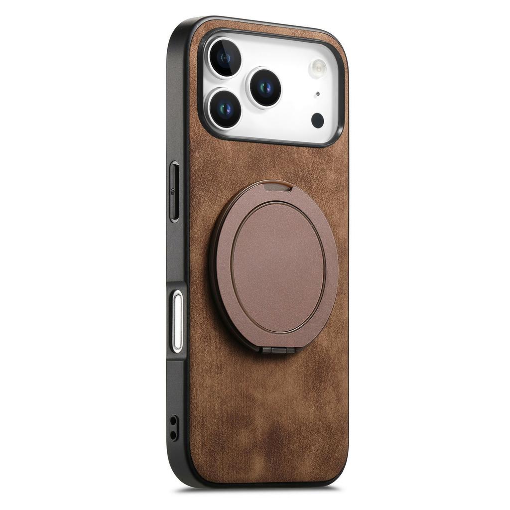 For iPhone 17 Pro Phone Case with Rotating Kickstand Stress Relief Retro Leather Back Cover