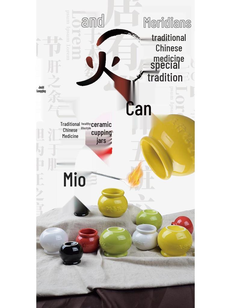 Home Ceramic Cupping Set for Meridian Dredging & Health - Five Elements Energy Jar with Negative Ions