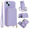 For iPhone 14/13 Case RFID Blocking Zipper Wallet Leather + TPU Phone Cover with Shoulder Strap