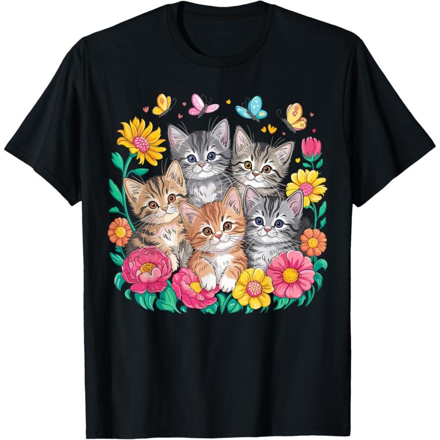 Cat Colorful Kittens Floral Cat T-Shirt(1)