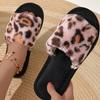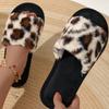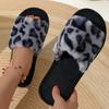 Order A Size Up Women's Luxurious Leopard Print Fuzzy Slippers, Plush Warm Open-Toe Soft Sole Home Floor Slippers