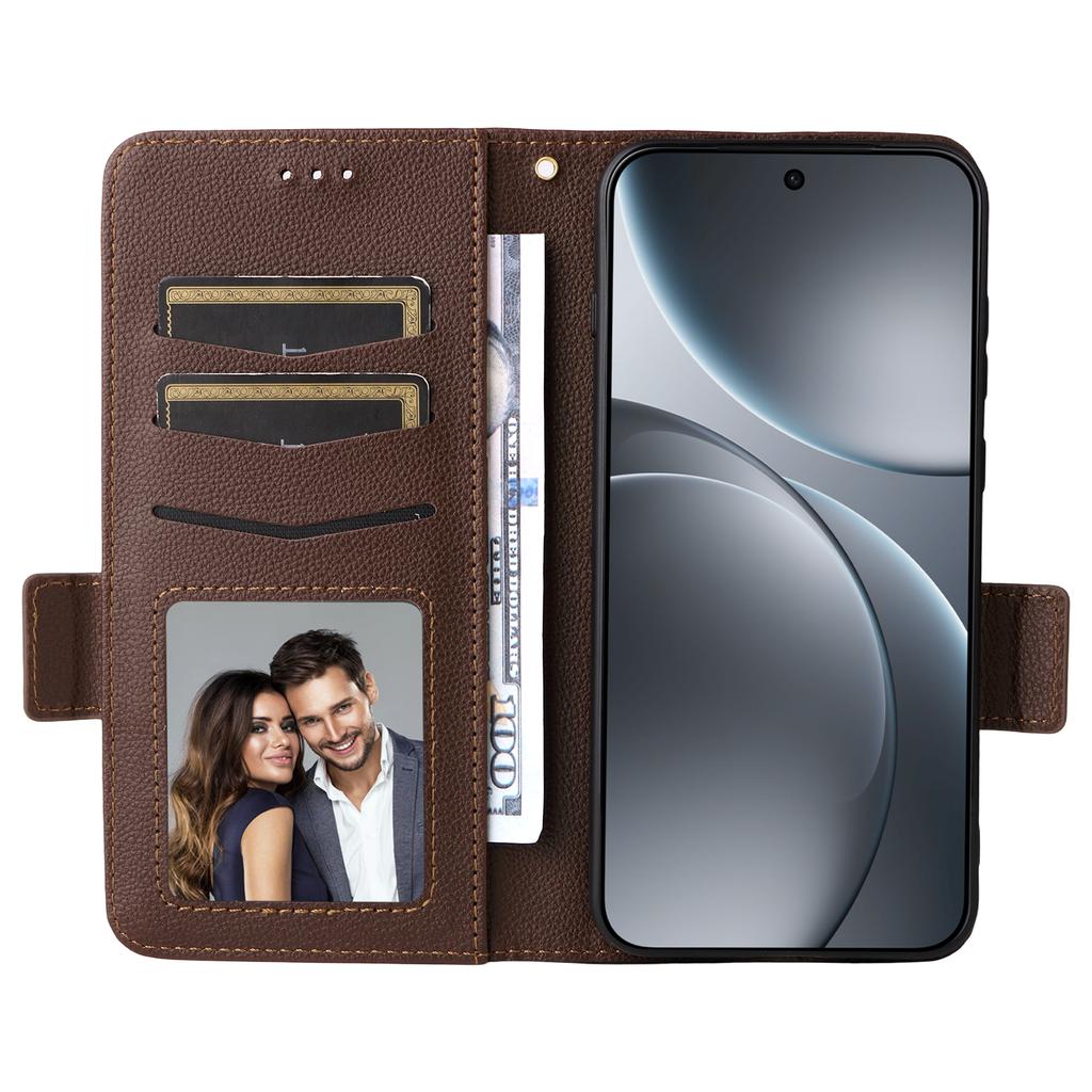 For Oppo Find X9 5G Case Litchi Texture Wallet Leather Phone Cover with Wrist Strap