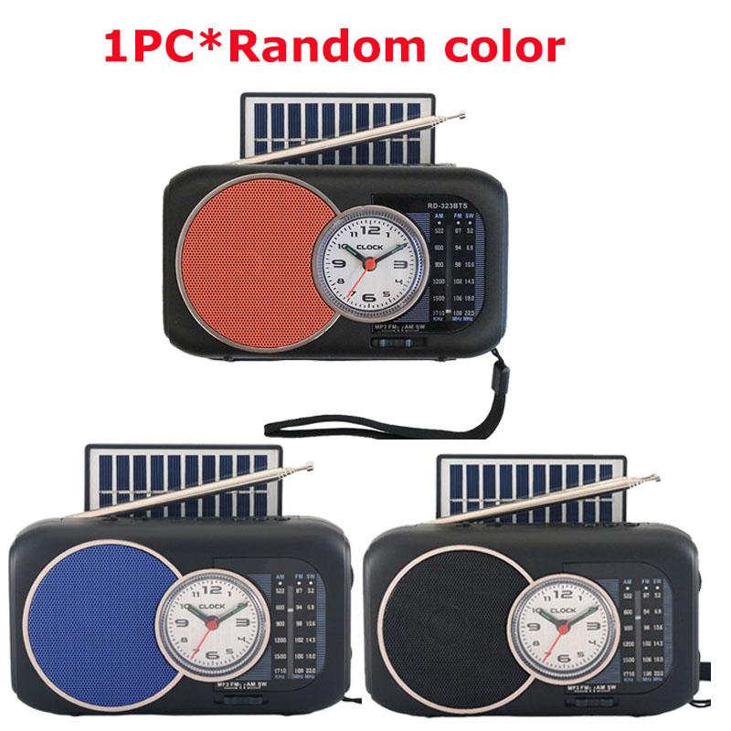 Mini Portable FM AM SW Radio Solar Charging Emergency Radios Receiver Wilress Bluetooth Speaker with Clock Support U Disk TF Car