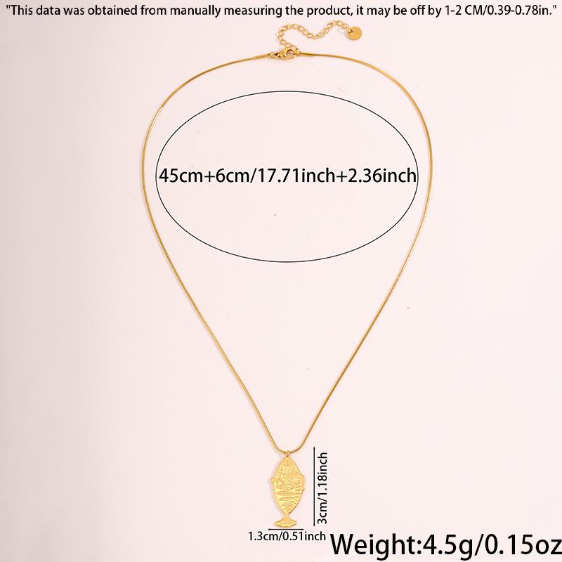 Retro Niche Exquisite Carved Fish Pendant Necklace, Non-Fading Titanium Steel Jewelry for Women