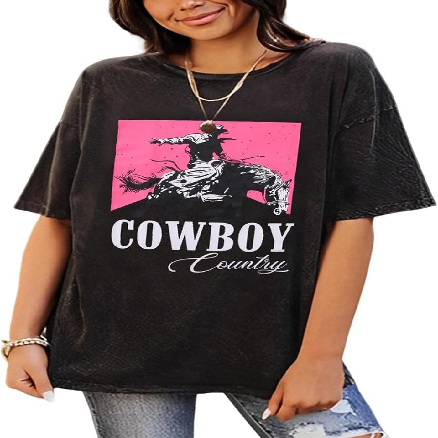 Cowboy Shirts for Women Western Vintage Rodeo T-Shirt Retro Bull Skull Graphic Tees Summer Casual Short Sleeve Tops
