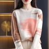 Autumn Fashion Cashmere Knitted Sweater Women Round Collar Pathcwork Color Pullover Winter Wool Sweater Tops Loose Clothes 28229