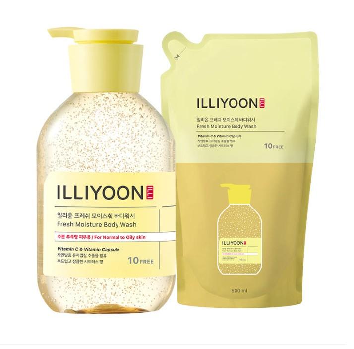 ILLIYOON Fresh Moisture Body Wash 500ml + 500ml Refill – Gentle Hydrating Daily Cleanser Set