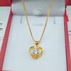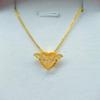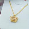 Vietnamese Sand Gold Heart Necklace with Gilded Brass Crown Pendant and Diamond Inlay In Multiple Styles