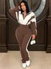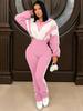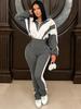 Effortless street style meets sporty comfort in this chic tracksuit set. The short sleeve crop top features a trendy color block design, while the matching high-waist pants offer a flattering, streamlined silhouette. Perfect for workouts, casual outings, or just relaxing in style, this set provides both a fashionable look and all-day ease.