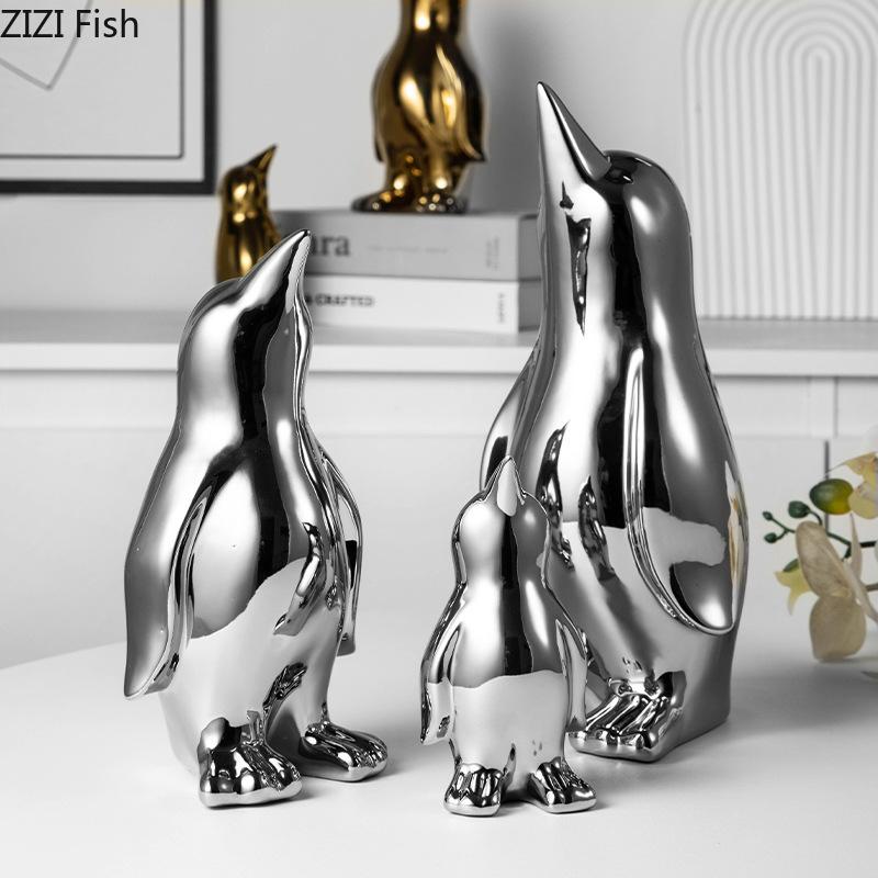 Creative Penguin Gold-plated Ceramic Statue Desk Decoration Penguin Sculpture Abstract Crafts Ornaments Room Aesthetics Decor