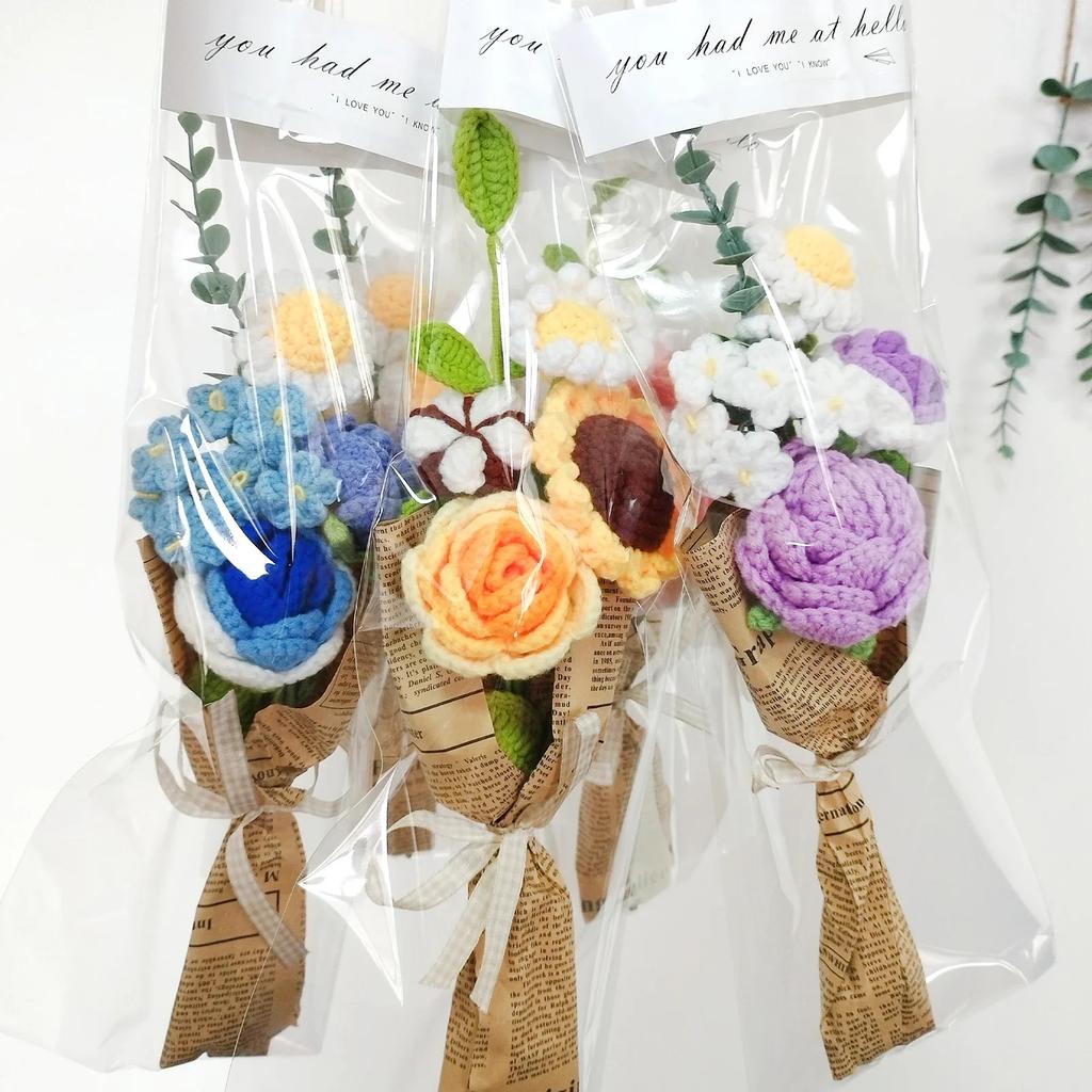 Homemade Knitting Crochet Flower Bouquet Romantic Wedding Bridal Bouquet Party Home Decoration Homemade Teacher's Day Gift