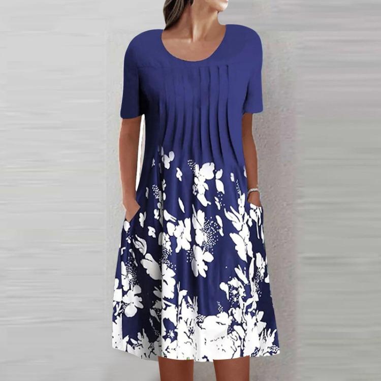 Women's Summer Casual Fashion Round Neck Short Sleeve Print Pullover Loose Dress