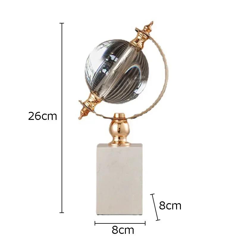 Gold-plated Globe Shape Crystal Ball Statue Marble Base Crafts Sculpture Desk Decoration Ornaments Room Aesthetics Decor Artwork