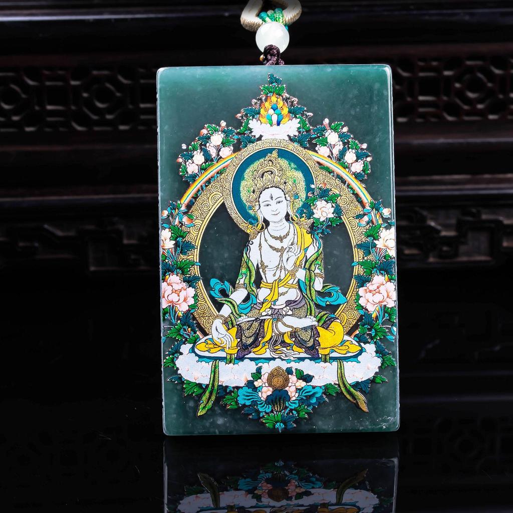 Exquisite High-Ice Grade A Natural Jade Pendant - White Tara Blue Water Design