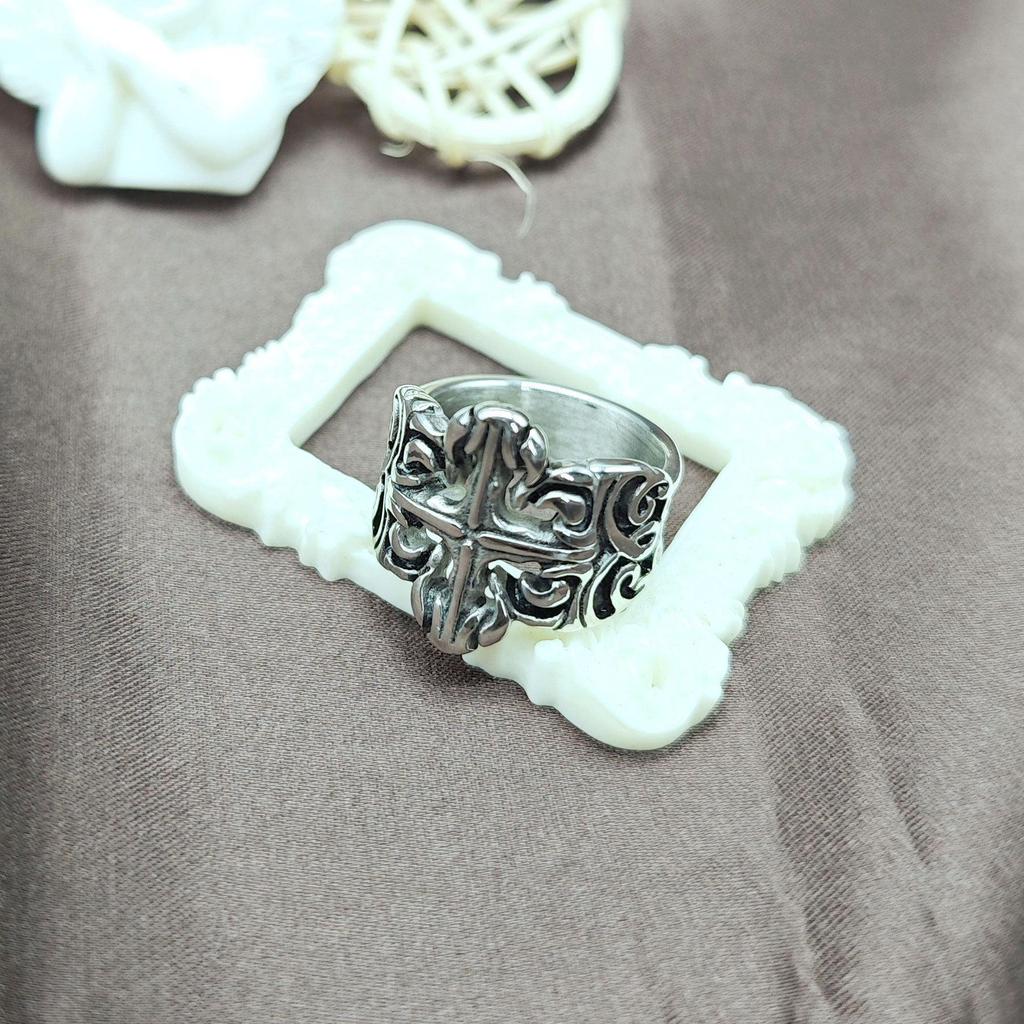 Men's Artistic Retro Floral Stainless Steel Ring - Central European Classic Design