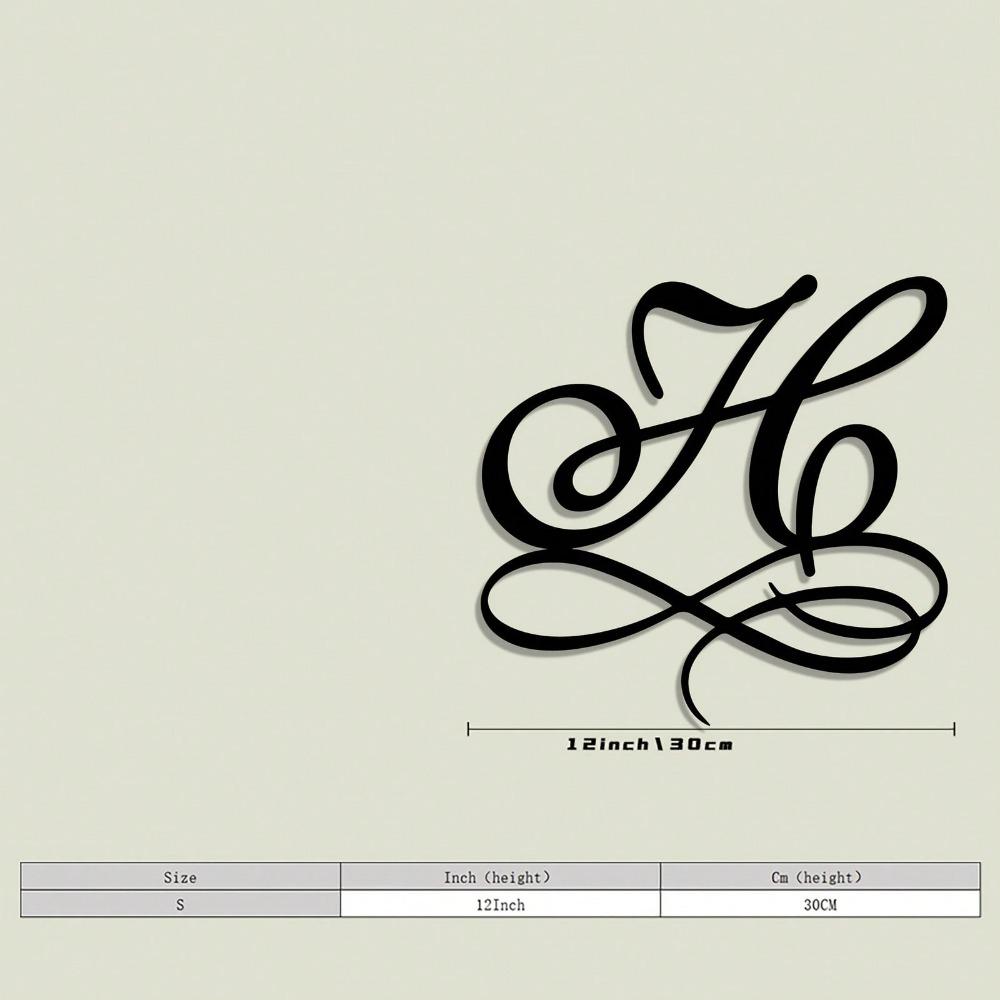 Monogram H Letter Metal Wall Art Cursive Iron Design Outdoor Indoor Decor