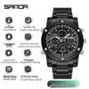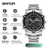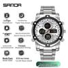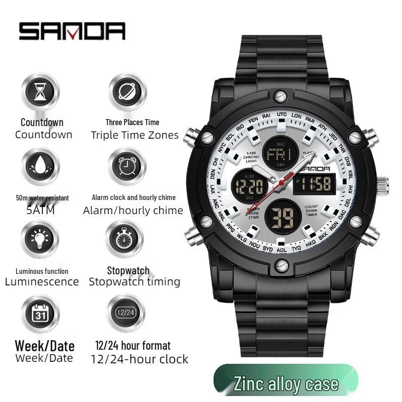 Sanda Tide Men's Dual Display Chronograph Watch: Cool Steel Band, Large Screen, Multifunctional, Waterproof, with Alarm Clock.