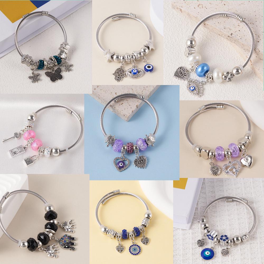 Temu Tree of Life Pendant with Stainless Steel Pandora-Style Bangle, Fashionable Beaded DIY Bracelet.