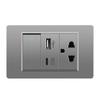 118 Type Switch Six-Hole Gray Wall Socket with Type-C 20W, Thai Style & PC Panel, Taiwan Socket