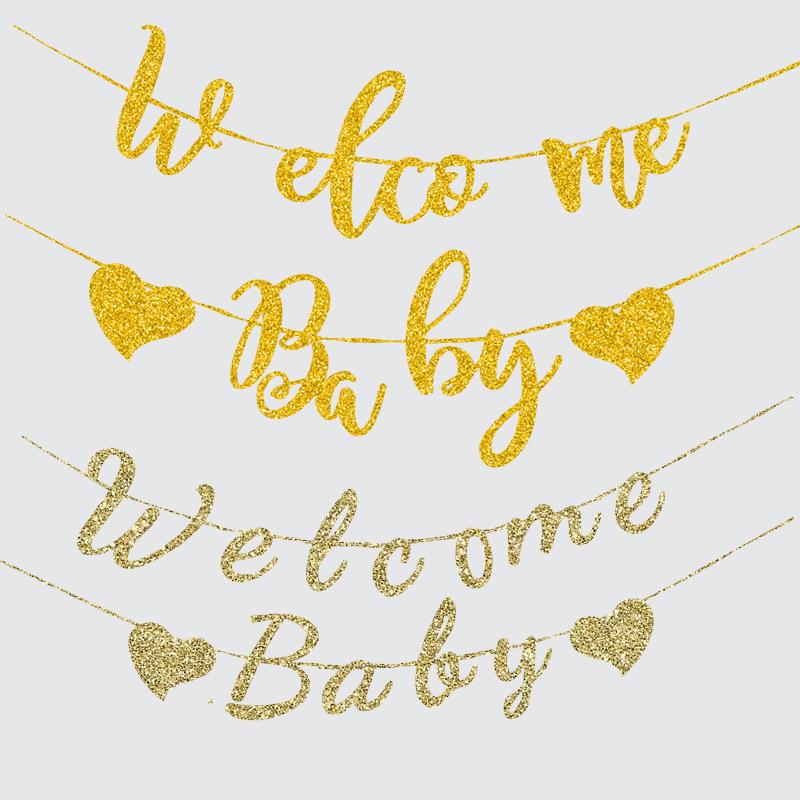 Gold Glitter Welcome Pull Flag for Birthday, Baby Shower, Back To School, Homecoming, Party Decoration