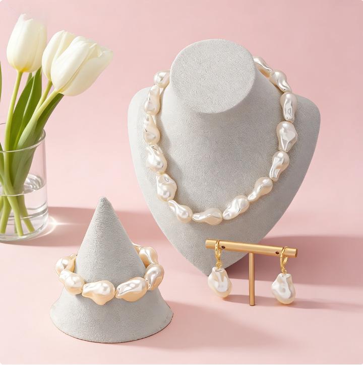 Baroque Pearl Choker, Bracelet & Earrings Set