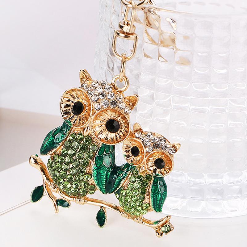 European Diamond-Studded Owl Keychain: Stylish Parent-Child Pendant for Bags & Cars