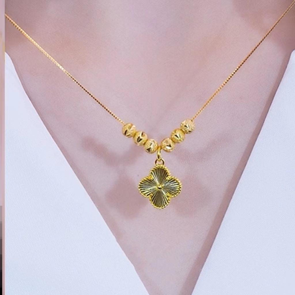 Vietnam Gold-Plated Four-Leaf Clover Necklace with Bead Pendant for Women