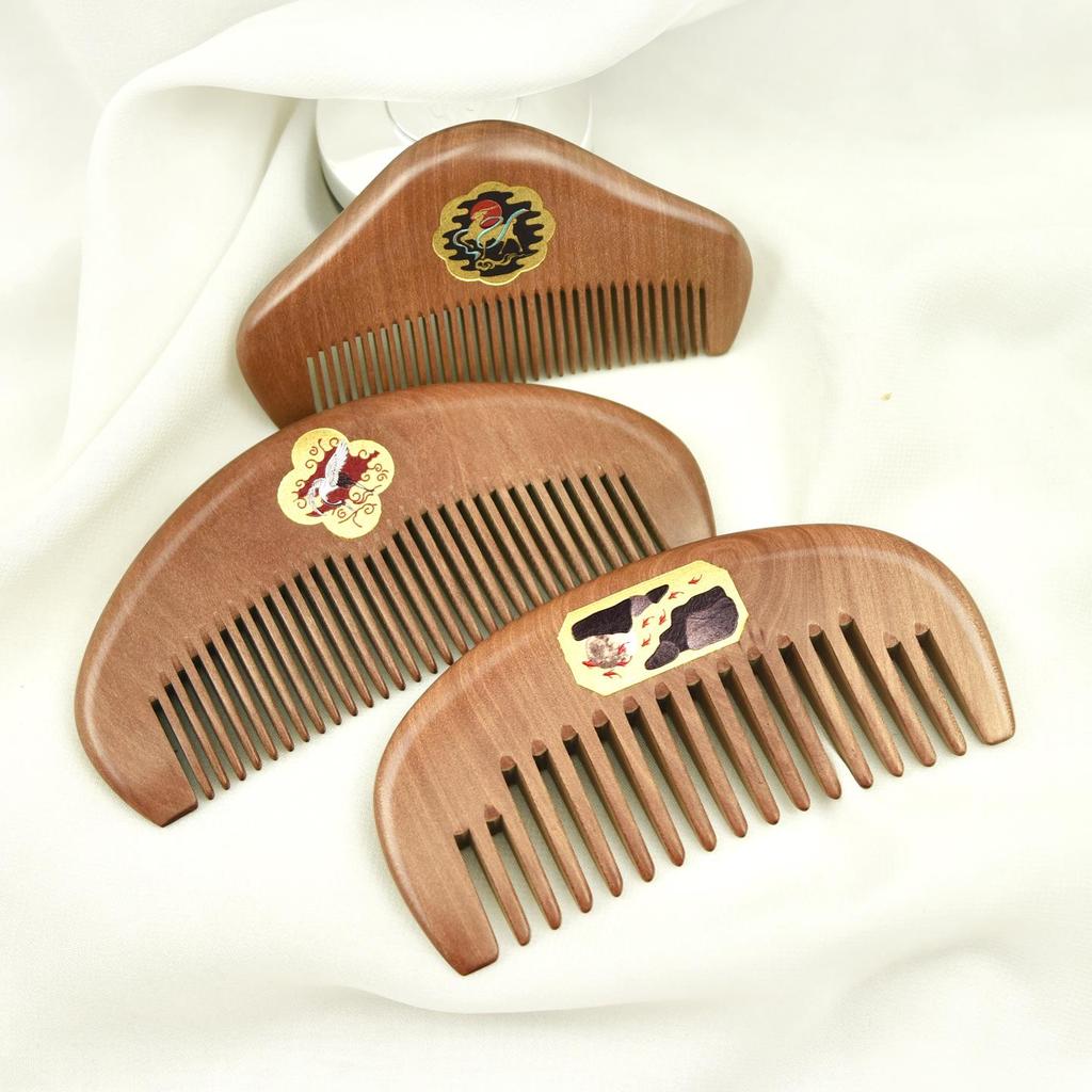 Nanmu Gold Painted Hairdressing Comb - Smooth Finish Women's Souvenir Gift
