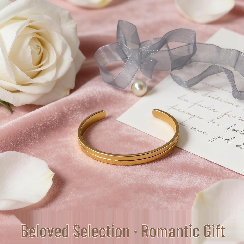 Geometric C-Shaped Open Groove Titanium Steel Bracelet for Men & Women - Non-Fading, Personalized Engraving, Couple-Style.