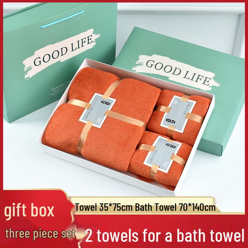 Coral Fleece Bath Towel Set: Three-Piece Gift Box with Custom Logo for Company Gifts or Souvenirs
