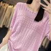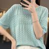 Neck Hollow Hook Flower Ice Silk Knitted Short-sleeved T-shirt for Women with Pullover Sexy Slightly Clear Comfortable Fit Bottoming Half-sleeved Top