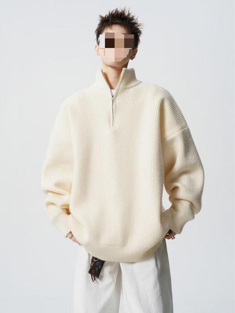 Elevate your autumn and winter wardrobe with this stylish oversized half-zip knit sweater. Featuring a loose fit and a stand neckline, this sweater offers both comfort and modern style. The long sleeves and thin thickness provide just the right amount of warmth for transitional weather. Crafted from a blend of polyester and chemical fiber materials, this sweater ensures durability and a soft touch. Perfect for layering, it effortlessly combines practicality with contemporary fashion.