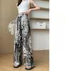 Ice Silk Wide-leg Pants for Women In Summer High-Waist Drooping Ink Tie-dye Latest Chinese Zen Pants Lazy Everyday Floor Sun Protection Pants